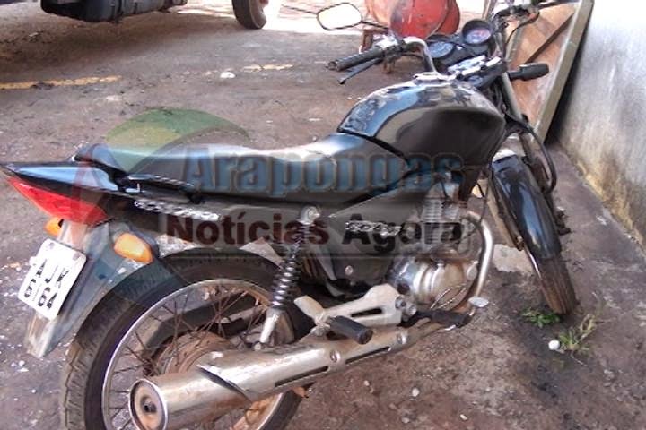 A Polícia Militar recebeu a denúncia anônima que havia uma motocicleta marca Honda/CG 150 Titan, de cor preta e placa ALQ 2480 na Estrada Pica Fogo.
